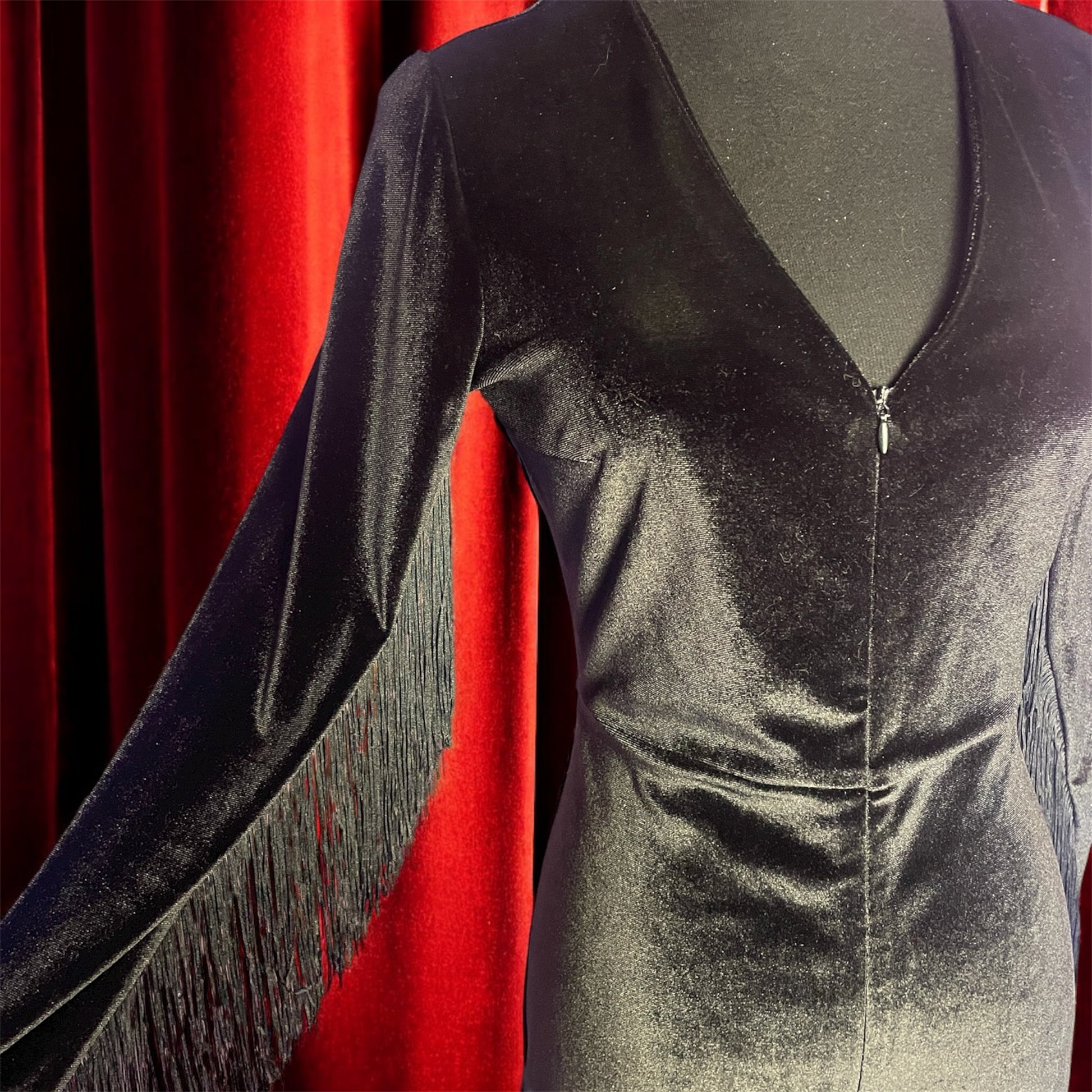 70s inspired Velvet Jumpsuit with Fringe Sleeves