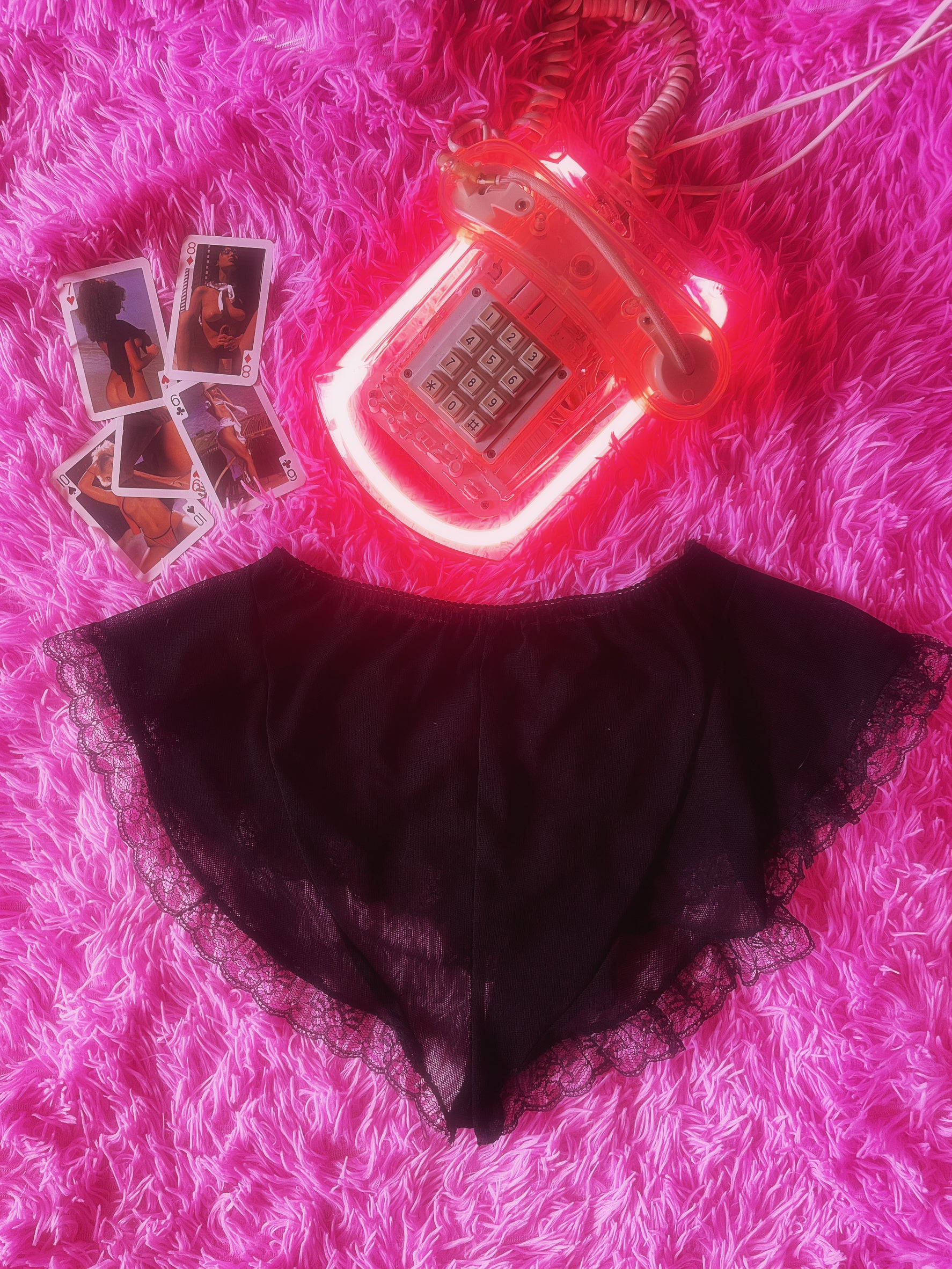Made from an original 80s pattern, these flounce panties are the sweetest yet sexiest see-through lingerie piece.